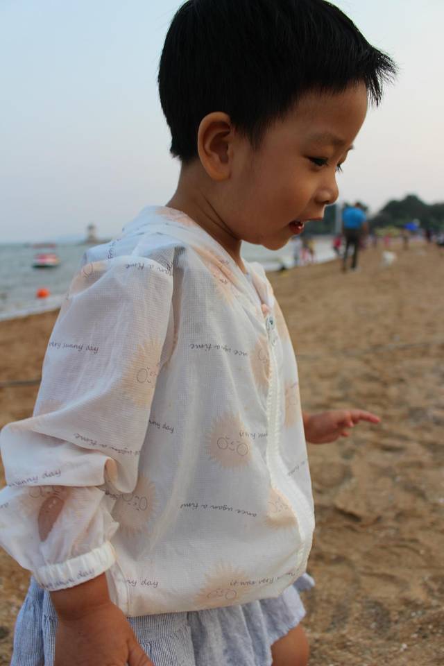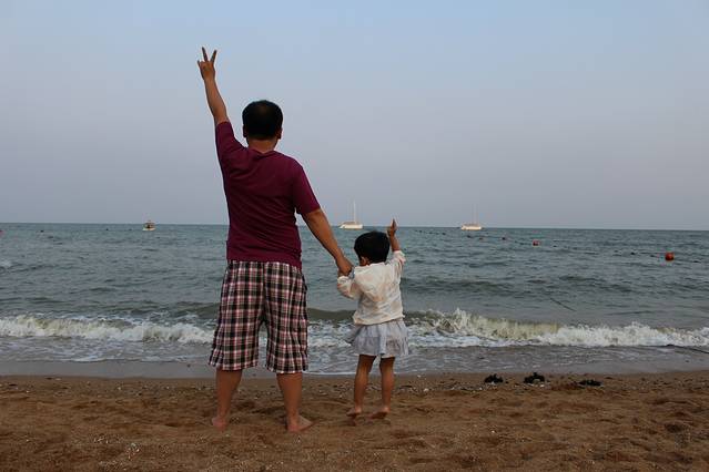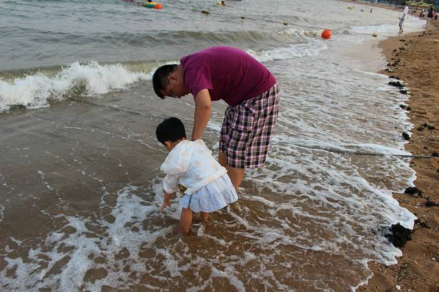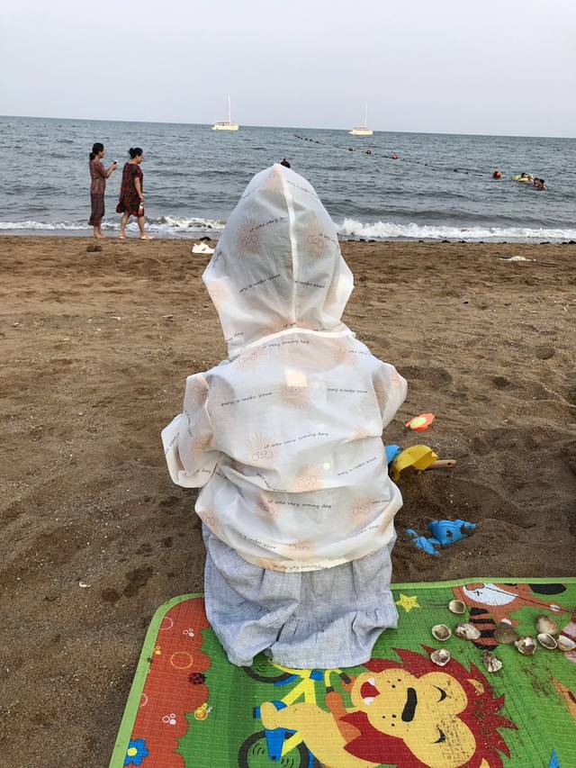 由于朵朵在火车上睡了一觉到住的地方死活不睡了,小朋友真是充电5分钟待机一整天啊~!于是就去海边玩了,住的地方到海边步行5分钟就是到了。