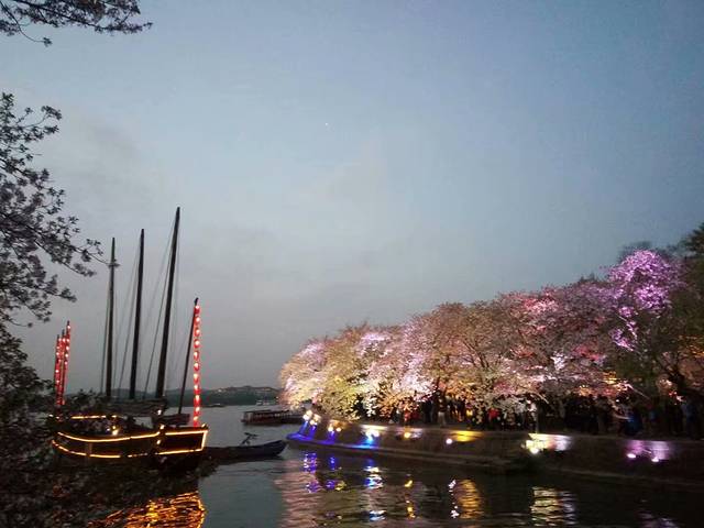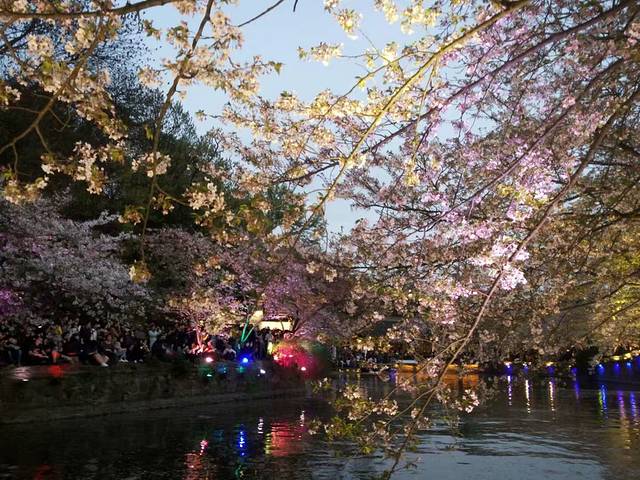 之后,尽管坐了观光车,也没缓过神来,我们真真的是倒在了草坪上几个小时,等待夜幕降临,我好点,中间还有动一动,老林决对是一动也没动。夜樱,美吧!