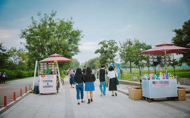 首尔的“夜猫子夜市”有很多,在首尔东大门DDP广场、清溪川、麻浦文化储备基地、汝矣岛和盘浦汉江公园等多个热门地点同时开展,出发前听了当地小姐姐的建议,选择了比较有特色的汝矣岛汉江公园夜猫子夜市~