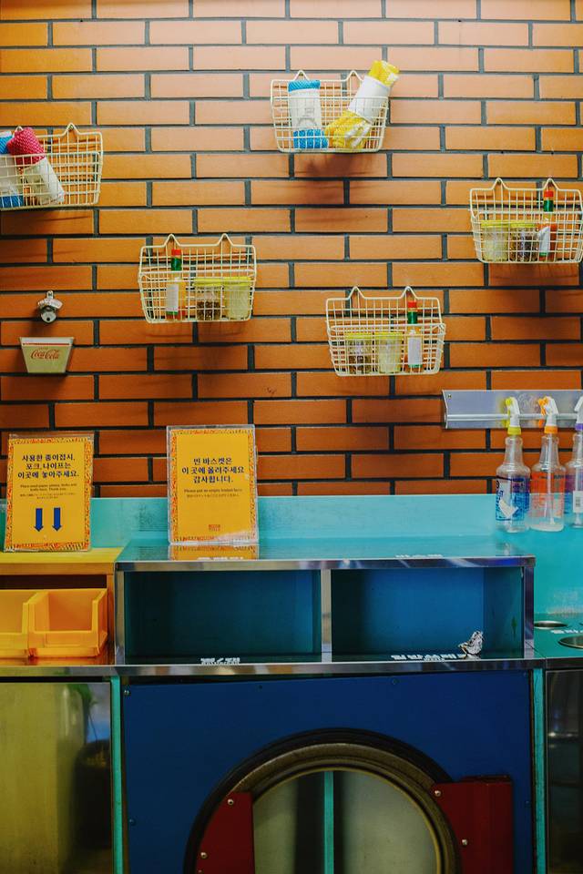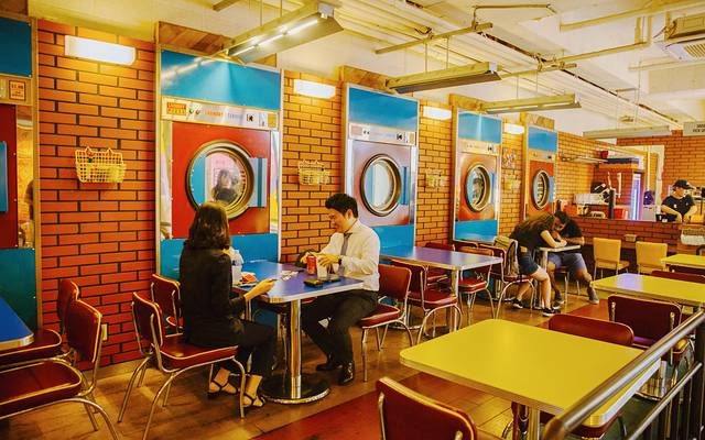 店家的装修浓浓的美式风格,neon light,红砖墙,还有洗衣机,活生生就是美国洗衣店的感觉,强烈的色彩对很容易就让人食欲大开;