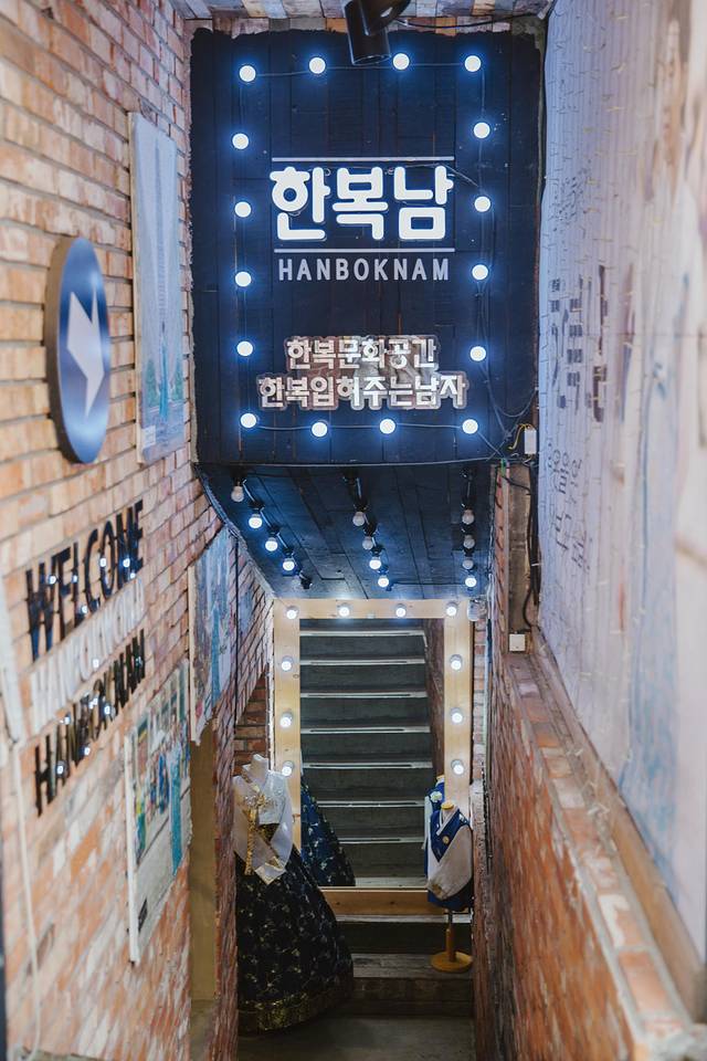 几经纠结,我们选择了景福宫附近的韩服男这家韩服体验店,店内有超过300套韩服供顾客挑选穿着,上下三层,一楼是发型设计何行李寄存,三层则是更衣换装,挑选衣物,一个人最多可以试两套韩服,男士女士上衣下裙男士裤子都是可以自行任意搭配的哦。