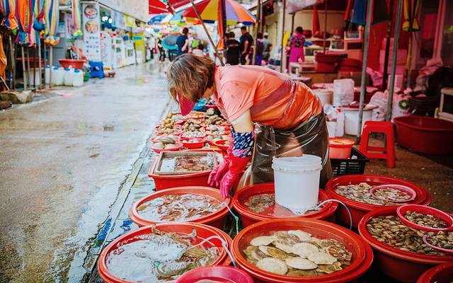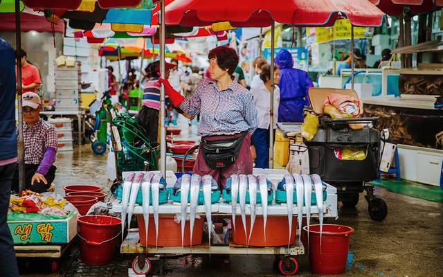 也许是因为市集上大街小巷的韩式烤肉和韩国料理;