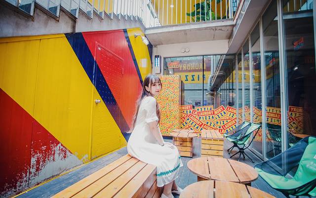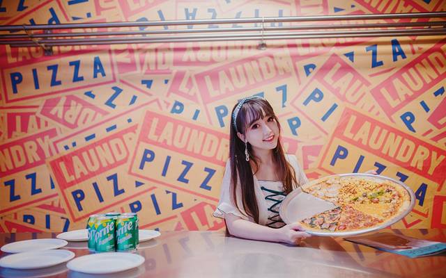 这是首尔的一家火爆美式披萨店—江南LAUNDRY PIZZA,主打口感硬质的薄底披萨,