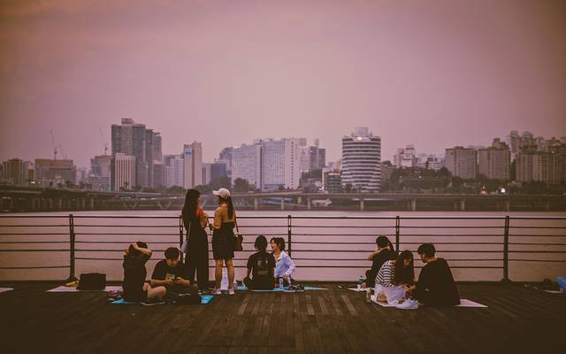 于是我们也学着当地人一样,围坐在一起,一边欣赏浪漫温馨的汉江夜景,一边享受着当地的炸鸡啤酒,别有一番自在浪漫在心头。