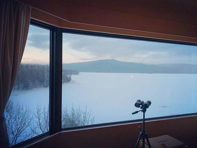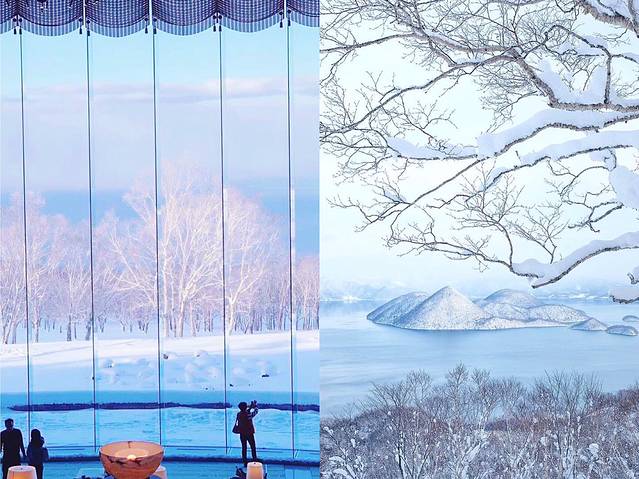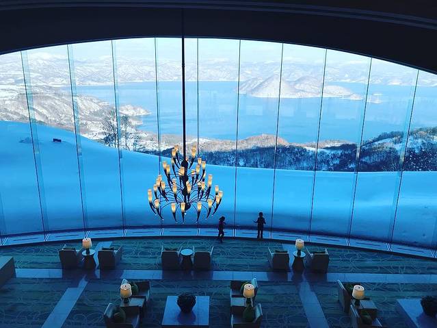 温莎酒店由于在山坡上虽然有很好的俯视洞爷湖的视野哦~进入酒店的大堂就被巨型的玻璃落地窗给吸引住了!在冬天就只需要隔着窗看着白雪皑皑的雪景发呆~真的太美了!