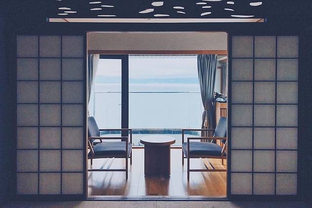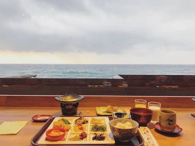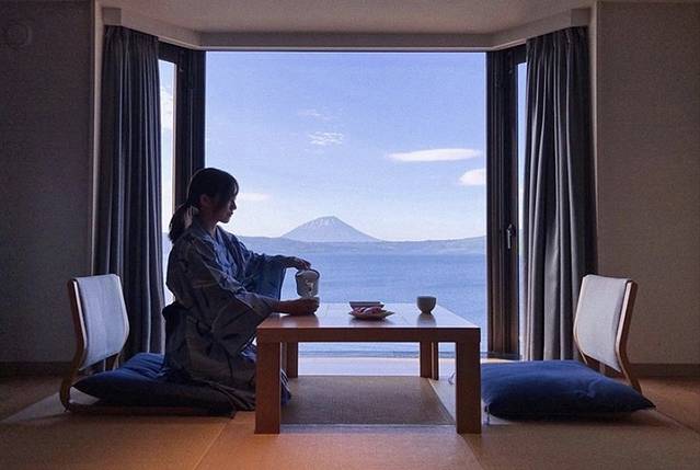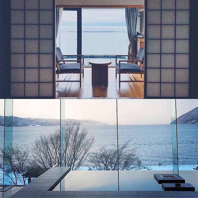 这家酒店位于函馆,最特別的就是它面向津清海峽,一楼大厅用超大片玻璃当作牆面,可以喝着咖啡、欣賞远阔海景。酒店共有20间客房且每间都附有海景露天温泉,这样便可以边泡温泉边欣赏海景了哦~