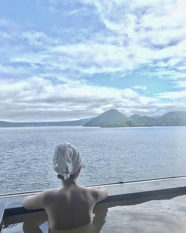 酒店就在洞爷湖畔,每间房间都可以看到超美的湖景,乃之风最有名的莫过于顶楼的露天无边温泉~