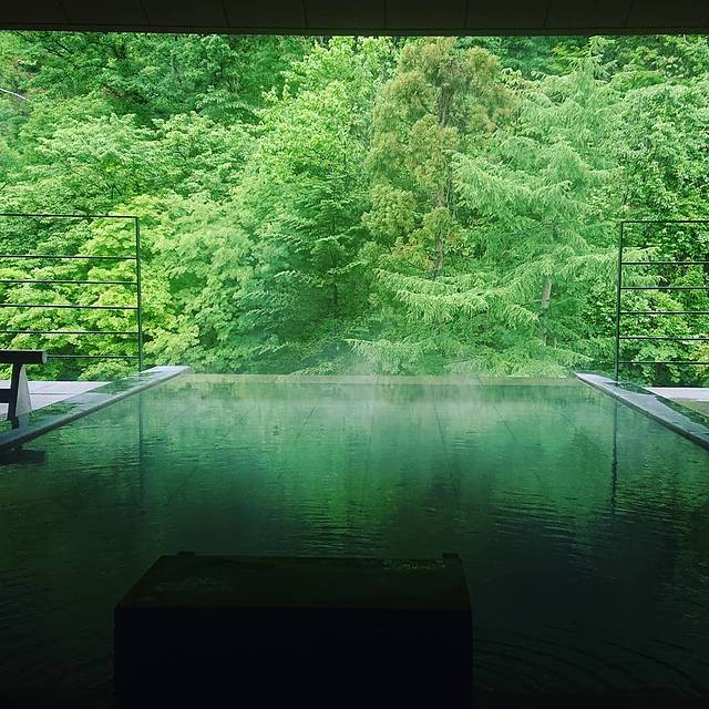 位于顶层露天风吕——云井之汤,一般无边泳池嘛正常人都能看出边,但是袅袅烟气中的无边温泉完全则融入了山景,所有的高度感、距离感都消失了,坐在温泉中,像在云上又似在林间,似真实又似幻境~