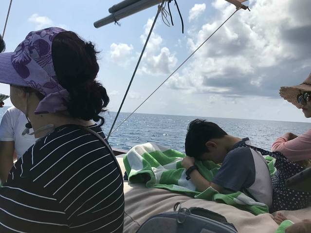 上了飞机和附近的伙伴聊了聊天,大家基本都是度蜜月,有一家是奶奶带着孙子,当初孩子的父母就是在这里度蜜月有了小宝,所以这次,奶奶带着孙子来看看爸爸妈妈曾经留下的痕迹。