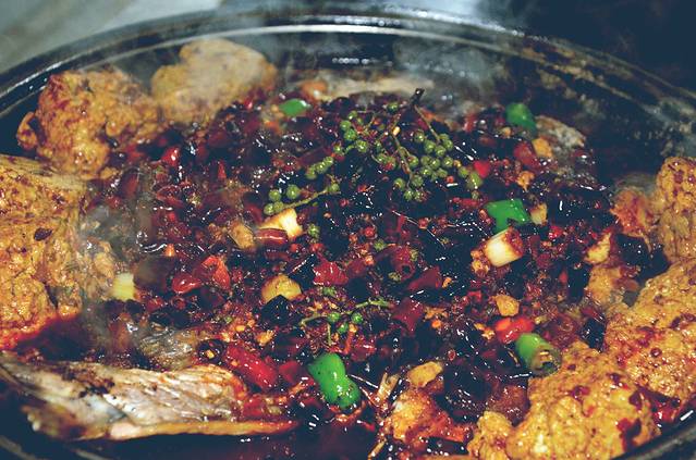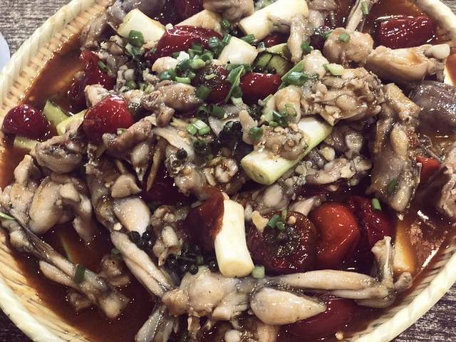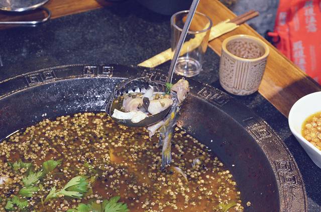 鱼类的可选择性也很多,江团、清波、裸斑、三角峰,生鱼切块,再浸入热锅辣油,在锅里久煮至入味,汩汩热油沸腾后,端上桌是“波澜不惊”的一盆鲜鱼,散发着一阵阵花椒的鲜香气息,闻之便令人食指大动,涎水三千。