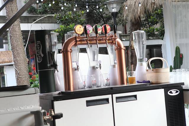 在旁边有个地方单独售卖饮料的,这些饮料大都是含有低酒精的各种口味的果味饮料,也有啤酒和没有酒精的纯饮料,一定有适合你的。