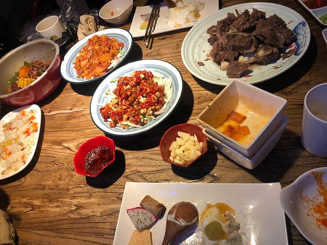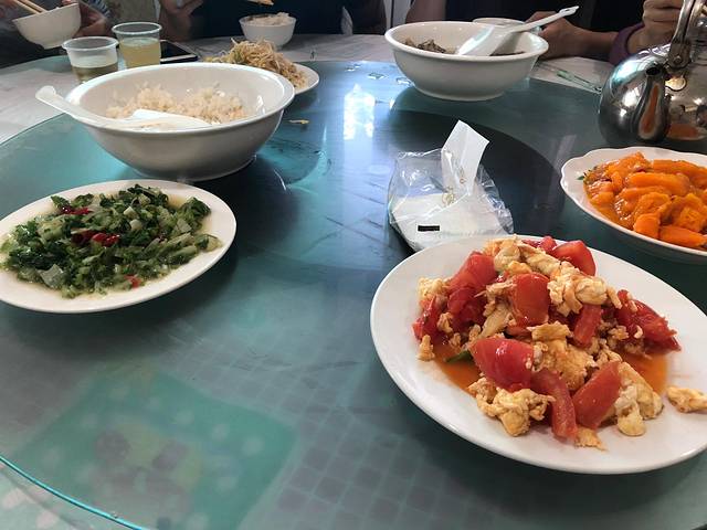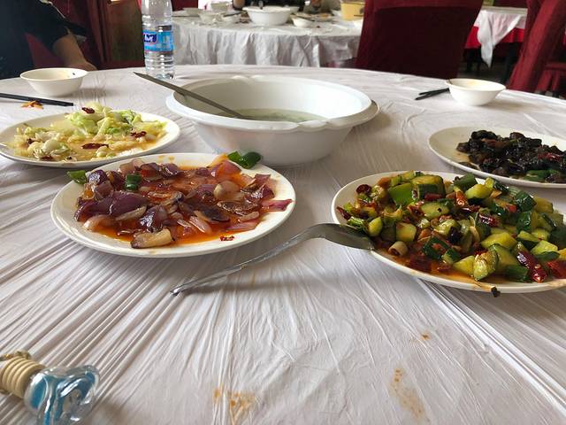 也算是吃饱了,七七八八吧,哈哈,一共两桌,旁边那桌是他们老年团友,我们这一桌基本是二三十岁