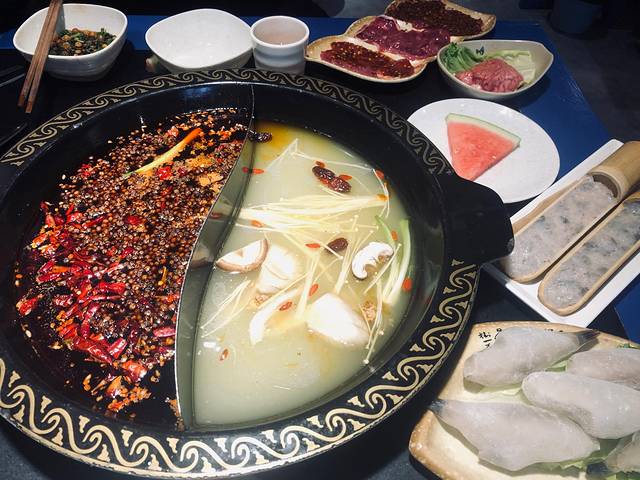 南方人,自然首选鸳鸯锅底,来重庆没有一顿火锅填填胃,哪有力气游览接下来的景点呢,虾滑、耗儿鱼、嫩牛肉、猪脑(强推),这些都是主打菜哟,特别是猪脑,重庆的火锅猪脑真的是又大又实惠