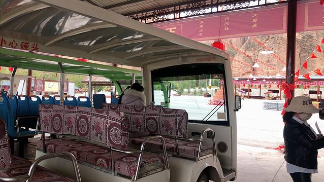 首先肯定要坐摆渡车抵达石林的中心位置,再坐上图的电瓶车去石林内的黄河边,去做本次的重头戏