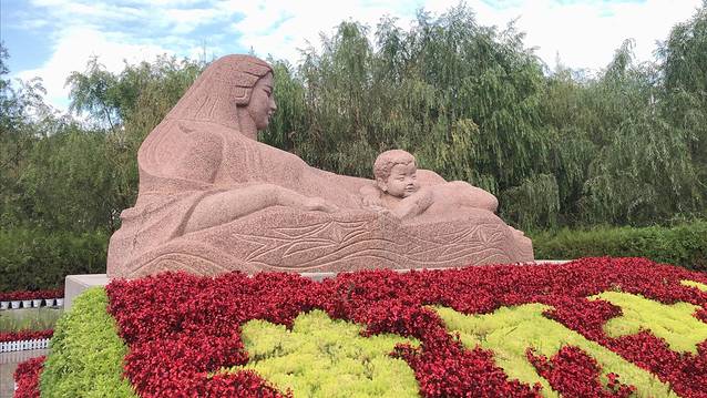 沿着黄河边上,一路向上走,目的地是黄河母亲像,作为母亲河,雕像很生动的表现出来