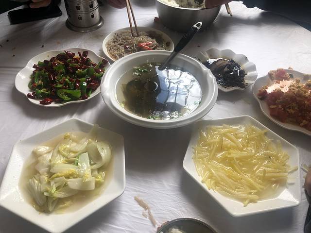 一桌人7个,我们也有七个菜,虽然没有西宁一日团那么丰盛,不过也有一份大鸡汤