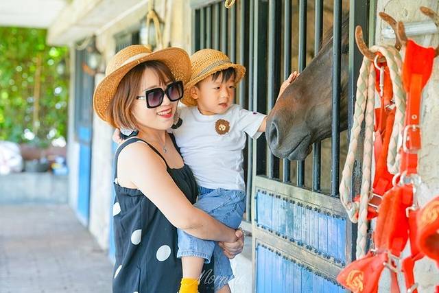 我和summer爸爸也体验了一回,你还别说,这骑马真没想象中那么简单。身体要顺应马的行走节奏,也不能因为太紧张而去夹紧马的身体。看来想要策马奔腾,还是需要好好练习呀。