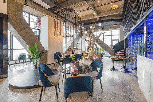 除此以外,酒店前台大厅位于47楼,这里拥有一个超级无敌的观景台和休闲区域,可以在这里观景或者喝咖啡休闲,而且这里对外开放,即便不住酒店也可以在这里点一杯咖啡,坐在窗边领略山城之美。