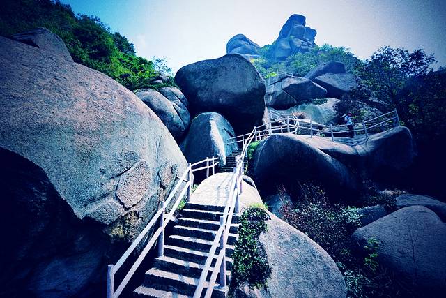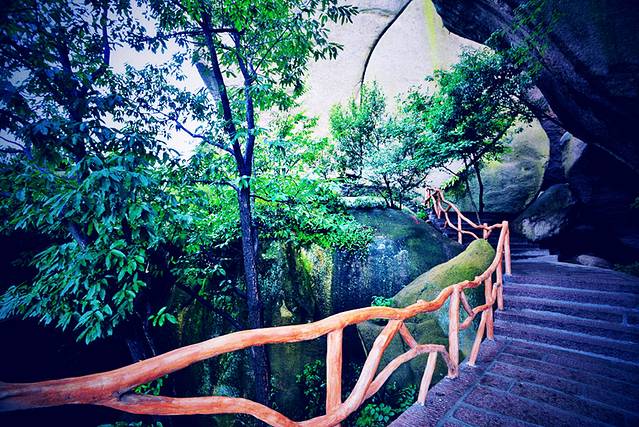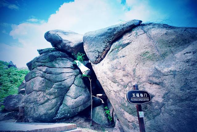 过了“鲤跃龙门”后是“五福临门”,这里也是巨石山的精华景点,这里巨石各异,形状之奇,让人不禁感叹起大自然的鬼斧神工来。