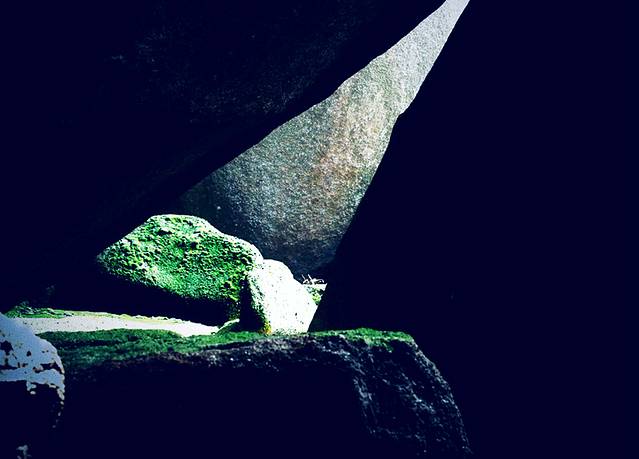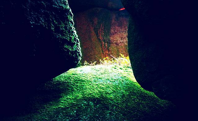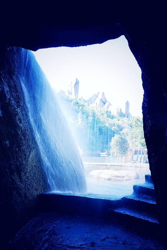 沿山道而下,直观就是有个幽静遂长的山洞--千曲洞;洞内道路大部分是弯弯曲曲的,窄的地方甚至需要佝偻通过,较黑的地方真的是伸手不见五指;洞内水流潺潺、泉水叮咚,