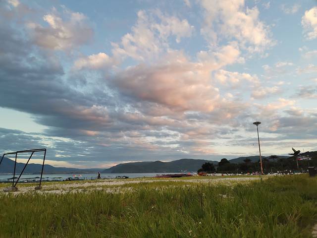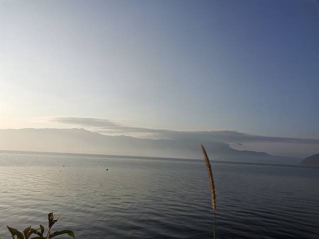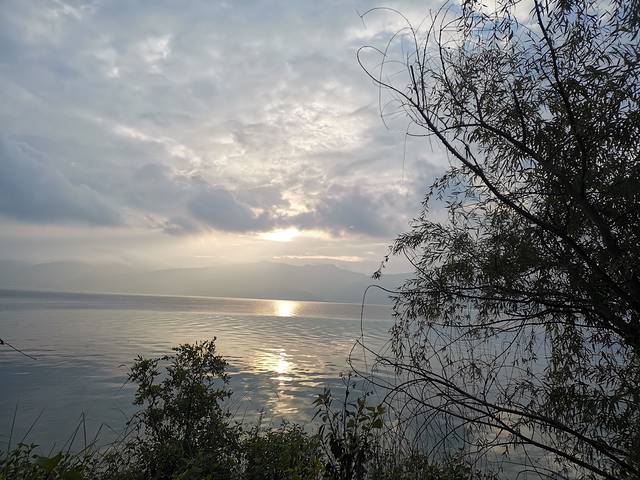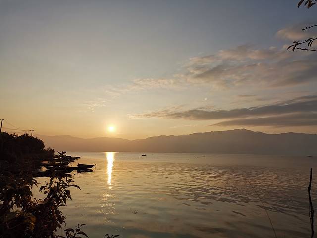 跑步打卡、抚仙湖日出、新鲜的空气、可以闻到植物的清香、微风吹来淡淡的湖水味道