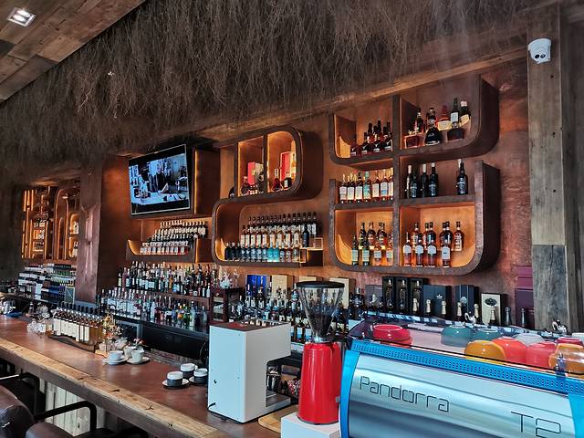 据说这是工人花了三个月时间、纯手工全铜打造的吧台、一锤一锤敲出来的“古月宿清”