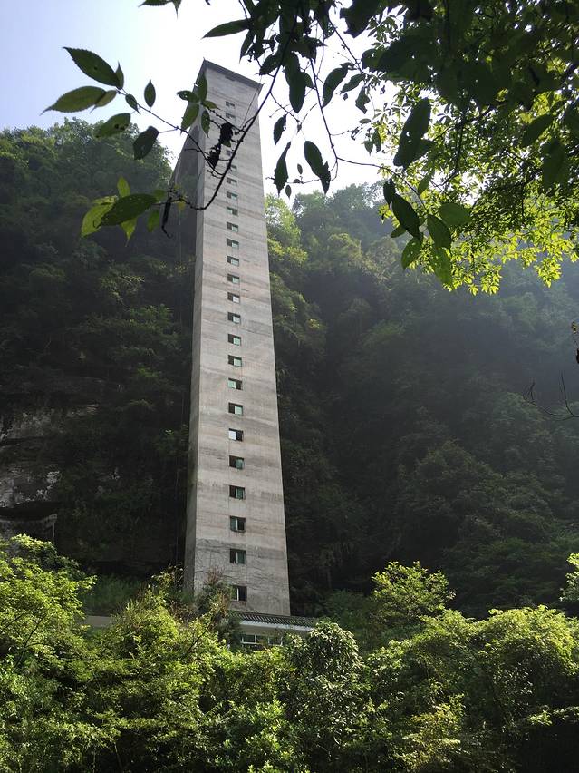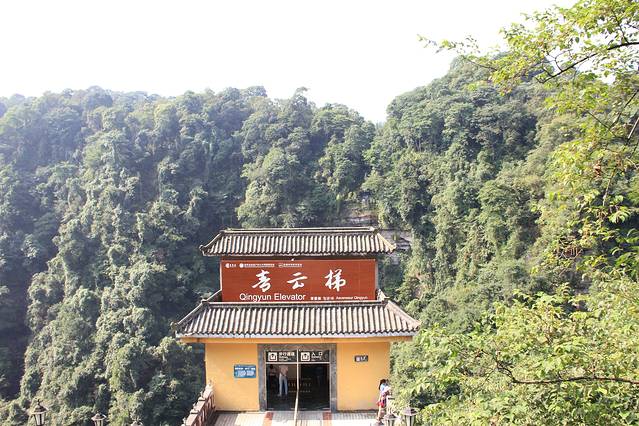 我们把车停在景区外面,排队买票进景区。步行一会走到青云梯入口,要坐一个直达电梯下到谷底。