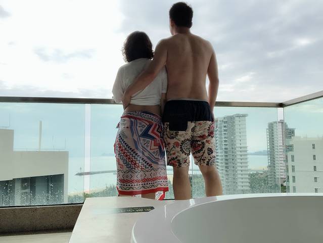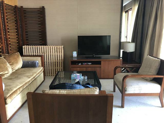 房间差不多60平的样子,一室一厅,阳台很大,远处就是大海,坐着阳台上吹着海风,别贴多惬意了。