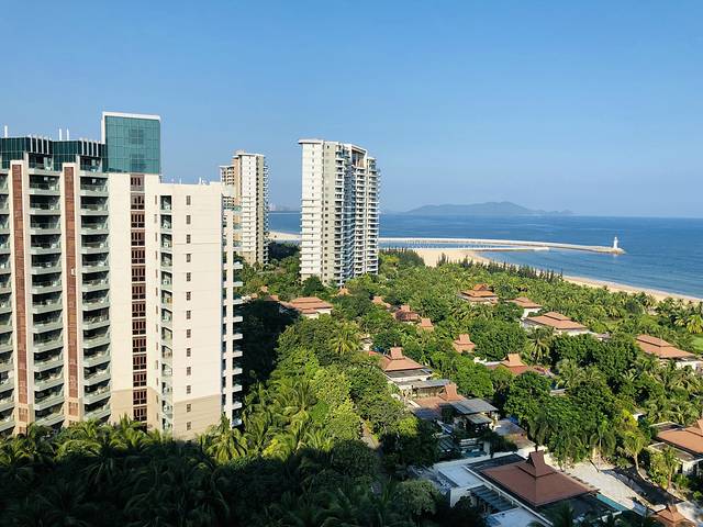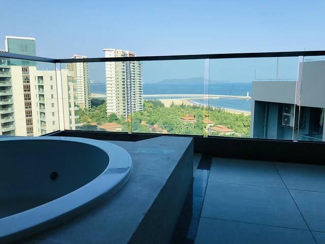 乘坐高铁快到博鳌的时候,我搜了一下高铁站离我们要去的海的故事还有很远的距离,也没有公交车,打车也要一百多,综合考虑之下,直接补了去陵水的票,多坐了一站路去了陵水,到达陵水高铁站后也是有公交车去清水湾,但是坐到终点站还得再打车坐10分钟的路程才能到海边,我们住在瀚海银滩,是一个雅居乐开发的海景小区,小区里空置的房子基本都被改造成公寓型酒店,现在是淡季,人很少,价位也很实惠,来海南这么多天,终于看到了心心念念的大海,还是有些小激动的。