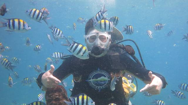 住在岛上就是为了能有充分的时间,可是由于我什么都玩不了,最终决定还是让老公去体验一下深海潜水吧,因为这个是所有项目里最有意义的项目了吧,大家应该都对海底世界充满好奇,就让老公当我的眼睛替我去探索吧。
