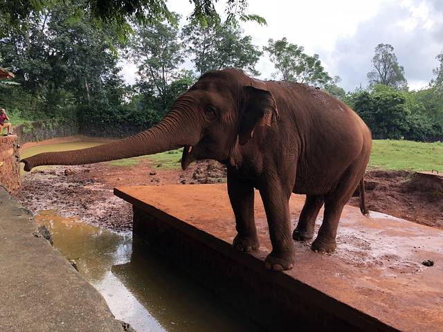 园区里就这一只大象,大家可以给他喂食,食物都是10元一份。