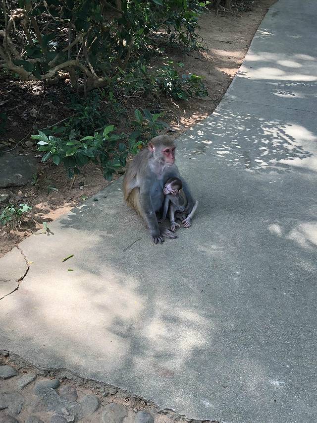 由于对猴子的喜爱,第二天来到附近不远的南湾猴岛,是我国也是世界上唯一的岛屿型猕猴自然保护区。岛上除了有热带植物近400种,动物近百种,原始的自然环境和2500多只国家二类保护动物猕猴外,因此人们称之为“猴岛”,需要坐跨海缆车才能上岛,岛上散养着2500多只猴子,走在岛上,脚下身边都是可爱的小猴子们上蹿下跳,需要提醒的是,上岛最好不要背包,背了也不要当着猴子们的面打开,因为它们会认为你是在拿什么好吃的,立马扑过来抢食,正常游览还是没什么问题的。我们是包了个车,连门票缆车加来回车费一人168,价格还算公道。看介绍说猴岛旁边还有一个呆呆岛,是一个强力推荐并且合适拍照的地方,很多网红打卡拍照景都有,我们因为走不动了就没有去。