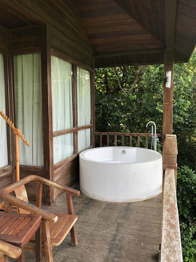 因为是淡季,岛上的海钓会所价格是平时三分之一,我们当然不能错过啦,如果不住在岛上的话,行程就会比较赶,因为必须在6点之前乘船离开,我们花了800块在岛上体验一晚还是非常值得的,首先如果办理入住的话会有很多优惠,比如送两张上岛门票,电瓶车免费,潜水也有一定的优惠,总之非常划算,服务也是没的说,房间都是建在半山腰上,临海而建,听说E区是景色最美的,我们去的比较晚。E区没有了,但是总体来说还是很好的。
