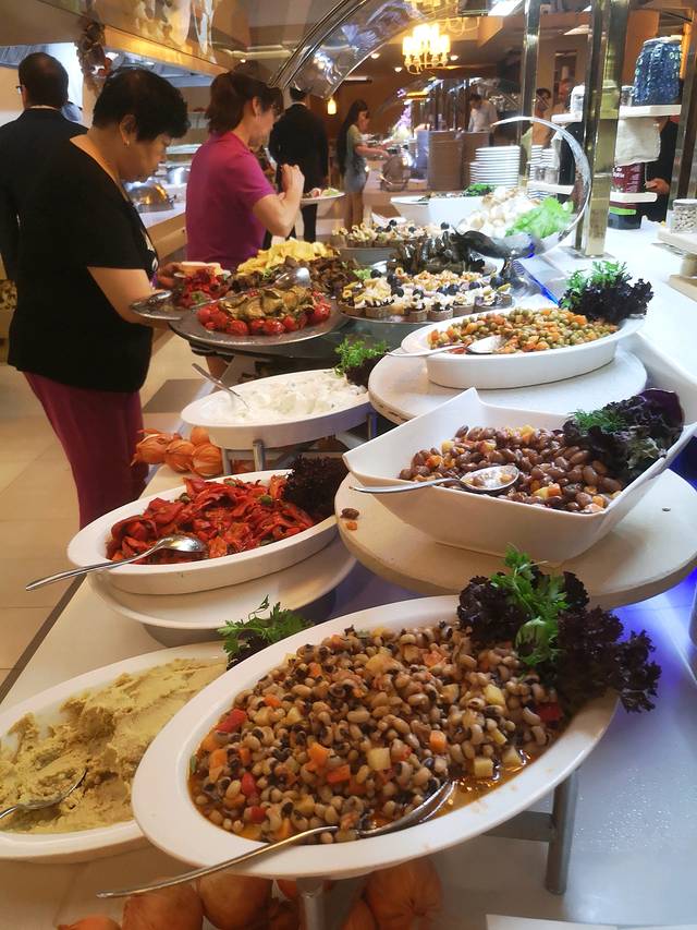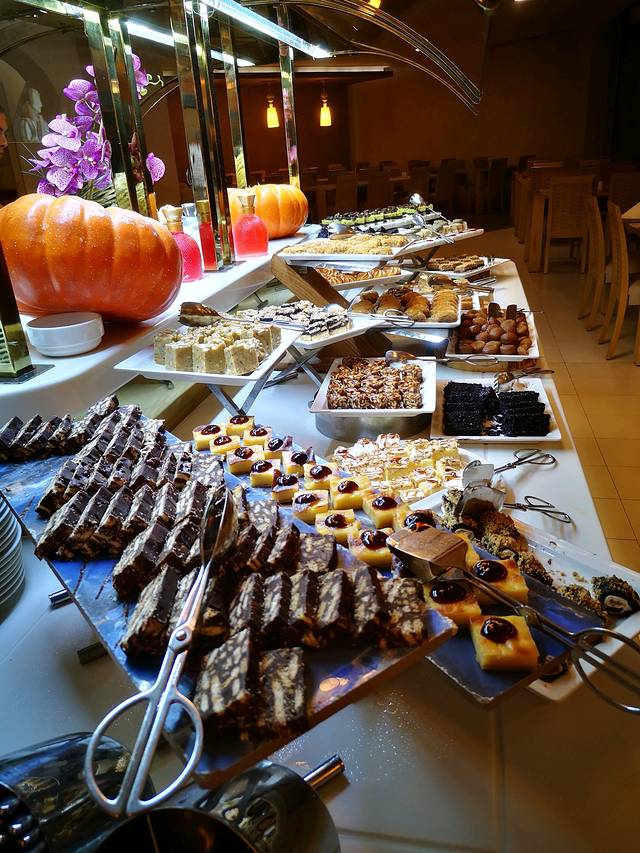 皇宫内,地上铺满手工地毯,华美异常,不难想象当夜幕降临、水晶灯全部亮起时,皇宫里该是多么的美丽绚烂啊!而新皇宫在内部装潢与家具摆设上的极尽奢华,还是令人十分震惊:豪华的水晶灯、象牙、黄金制品比比皆是,据说为了装饰整个宫殿,一共用了十四吨黄金和四十吨白银。