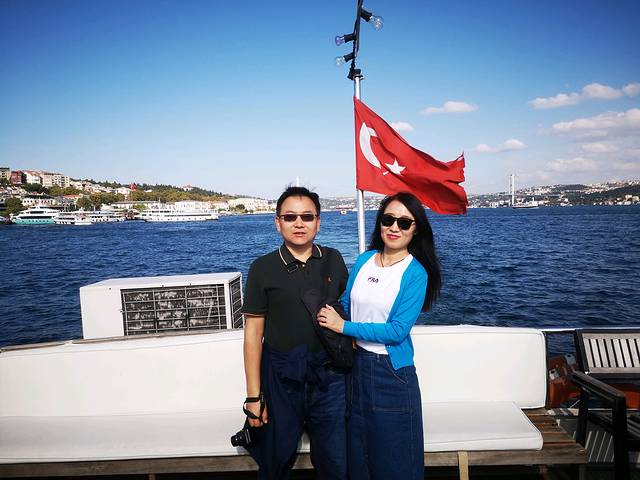 土耳其时间下午2点多我们登上了波斯普鲁斯海峡的游轮,临上游轮前,先和“欧亚大桥”合个影。