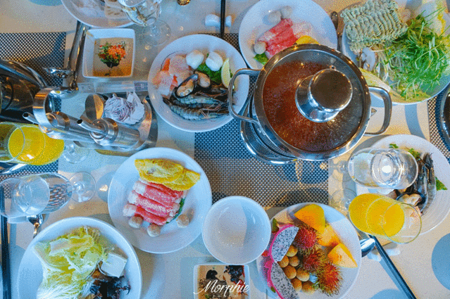 海涵火锅在帆船自助餐厅旁边,在这里可以270度无死角欣赏海景。嗜火锅如命的我怎么能错过这家餐厅?大锅和小锅两种选择,还有超多种类的蔬菜、水果、甜品、海鲜等,现在想起来我还是忍不住要流口水!