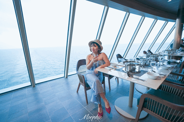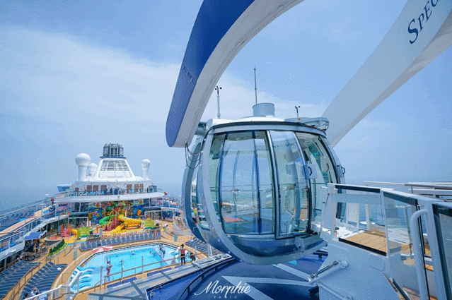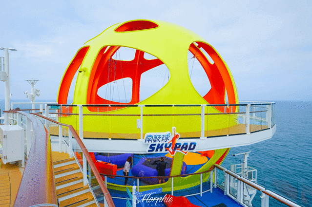 结束了南极球的刺激体验,双脚似乎都还在颤抖,我又迫不及待地去打卡北极星了。北极星是整艘游轮最高观景点,光谱号的两大特色之一,可以360度俯瞰整个船体和水平面,一定要去体验一下!