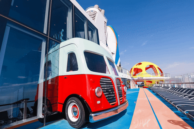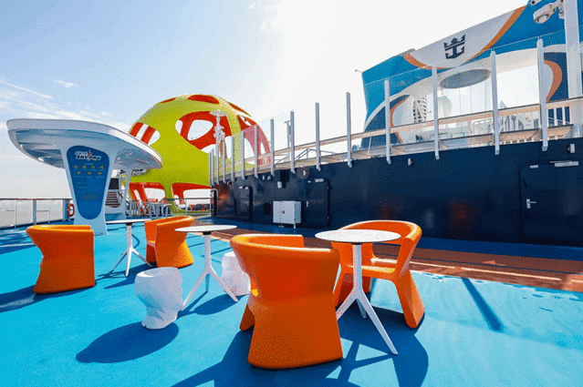 如果在游轮上只能吹吹海风,在泳池旁躺着晒太阳那未免也太无趣了。海洋光谱号的游乐设施之齐全让我惊叹不已。这艘游轮上,是真真的有一个游乐场呀!