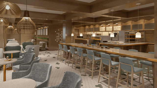 升级版的主餐厅是所有餐厅中的一颗明珠,位于游轮3—4层。由四间独立餐厅合并而成的免费主餐厅可容纳近2000人同时用餐。主餐厅每天提供不同的两种菜谱,既有西式的,也有中式的。我点了一份五分熟的T骨牛排,当刀割下去的时候,可以看见里面还带有一丝鲜红。恰到火候的炙烤,成功融合了菲力牛排的鲜嫩和西冷牛排的嚼劲。这让我停不下来,吃了整整一份的烤牛排。