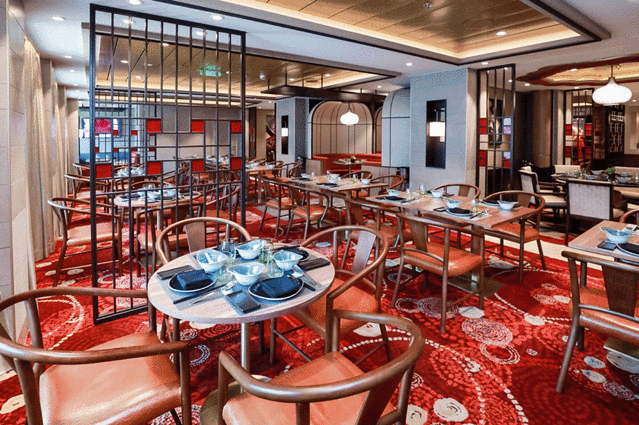 作为北方人的我对辣情有独钟,尤其喜欢川菜。所以在海洋光谱号上,最合我口味的还是这家川谷荟。这家餐厅的装修风格非常中式,红色喜庆,棕色稳重,一看就是地地道道的中餐馆。作为海洋光谱号上唯一一家正宗的川菜料理,这家餐厅的菜肴用麻辣和浓香俘获了我的味蕾。虽然川菜不太适合孩子吃,但是对于不辣的菜,小Summer还是吃的津津有味。全家出游的我们特地预定了家庭包房,在这里吃的每一餐都那么满足。