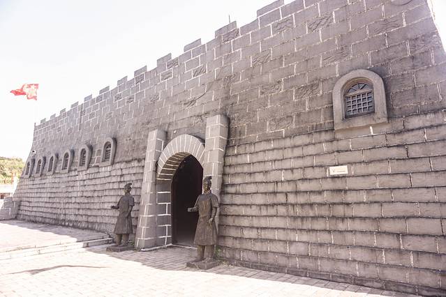 这个仿古长城全长3公里,分别由五个烽火台和一个展览馆拼建而来,在观花长城的入口位置还建立了一个以爱国教育为主题的长城文化展览馆,是景区策划人发自内心的爱国情怀的表达。