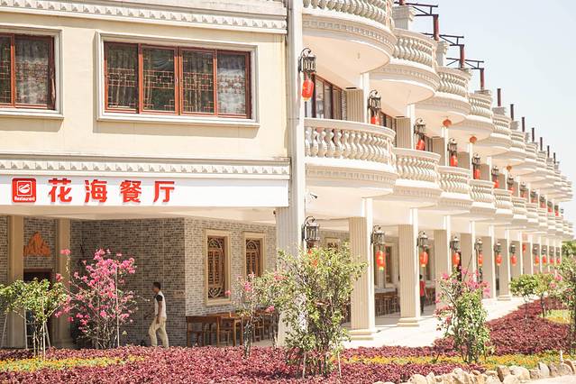 而这家农家菜餐厅就在景区里,名叫花海餐厅,以侨乡特色文化为主题,环境优美。