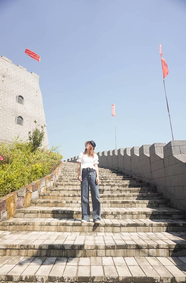 从馆里出来就得攀登小长城啦,沿着小长城慢慢地走上去,边欣赏着外头的风景,心情莫名愉悦。今天太阳正好,有风所以也不算热。一路上走,不难发现长城四处都插放着小国旗,在风中飞扬着,一股爱国主义气息油然而生。
