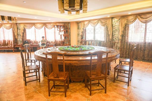 一楼大厅设有蓝天白云中空大厅、中型宴会厅、豪华包房等等,可以容纳1000多人用餐。房间装饰古朴雅致,一个大圆桌子,适合家庭朋友相聚。
