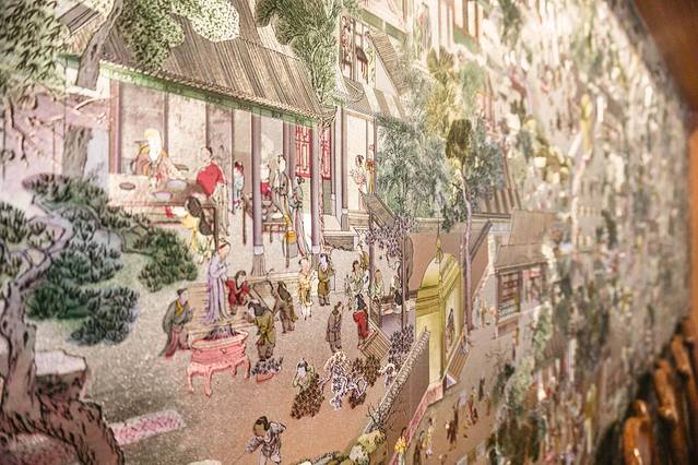 墙上还贴上了精美的贴纸,细致地描绘了古时候古人的生活写照图。