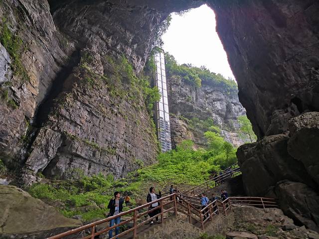 到达景区通过电梯直达谷底,十分便捷,全程走下来没什么上坡,行走轻松,风景秀美。