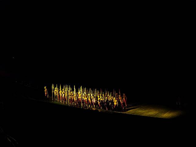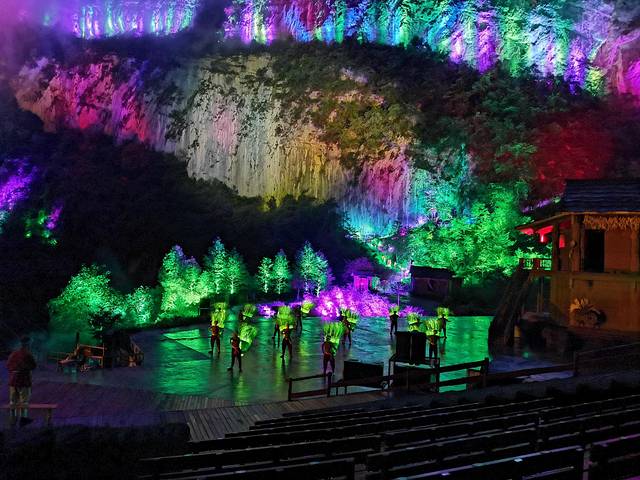 整个情节扣人心弦,充分利用现代声光电技术给观众呈现出一场精彩纷呈的演出,此剧以天然悬崖峭壁为幕布,舞台更延伸到观众席中,让观众能够更加直观的欣赏演员的表演。