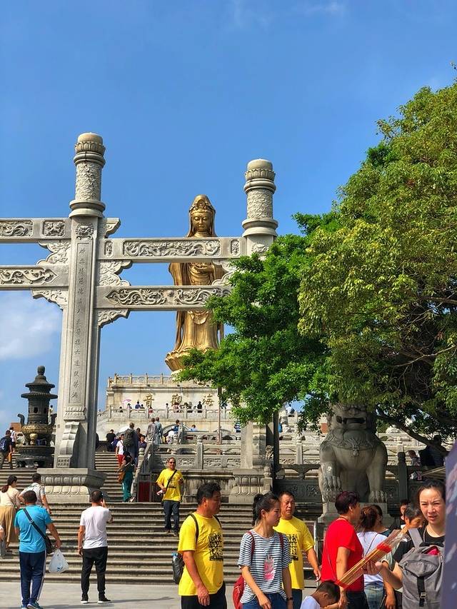 有人来舟山是为了游玩,也有人来舟山是专门到普陀山虔诚祭拜的,到普陀山需要乘船上岛,如果只是去寺里拜拜的话当天就能返回,想要仔细游玩普陀山景区就上就岛上留宿了,普陀山很大,住宿比较方便,我们去的当天来往的人络绎不绝,我们也进去跪拜,求平安,求财富