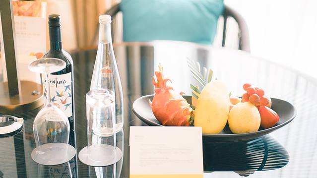 一进房间,就看到准备好的新鲜水果,房间面积还是比较大的,有浴缸和阳台,房间内还有一个大大的躺椅沙发,一般来说住两个人是丝毫感受不到拥挤的。
