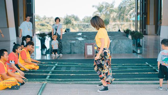 刚到酒店,礼宾部的小哥哥小姐姐就热情的给我们递上了果汁饮料和擦手毛巾,与此同时,还有海南黎族表演的竹竿舞,可以说是没有进酒店,就感受到了他们的洋溢的热情。